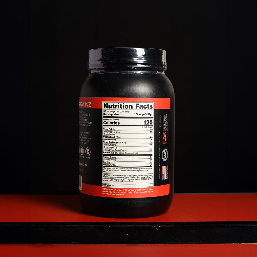 Buck Fee es una proteína en polvo de suero (whey) premium, formulada con aislado y concentrado de proteína obtenidos de ganado alimentado con pasto y sin hormonas. Presenta un perfil nutricional limpio, con solo 25 g de proteína por porción, y viene enriquecido con una mezcla de enzimas digestivas para facilitar su absorción.