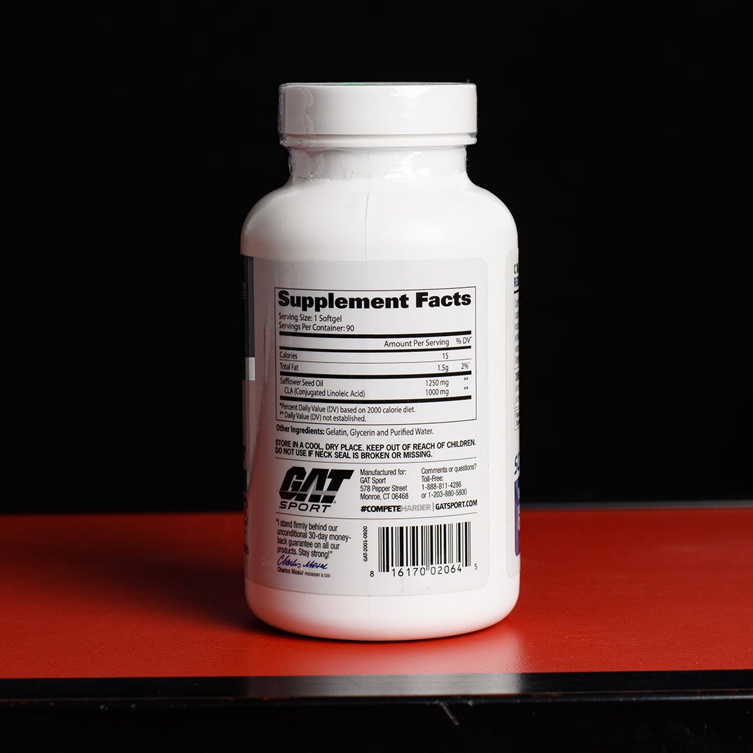 CLA 1250 de GAT Sport es un suplemento en cápsulas blandas que aporta Ácido Linoleico Conjugado (CLA) en dosis de 1250 mg por cápsula. Se presenta en frasco de 90 cápsulas, diseñado para apoyar la reducción de grasa corporal y el desarrollo de masa muscular magra.