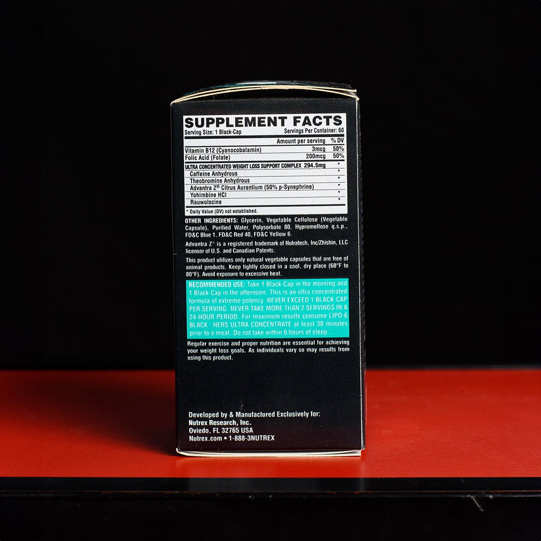 Lipo 6 Black Hers de Nutrex Research es un termogénico ultra concentrado especialmente formulado para mujeres, diseñado para apoyar la quema de grasa, aumentar la energía y promover el control del apetito.