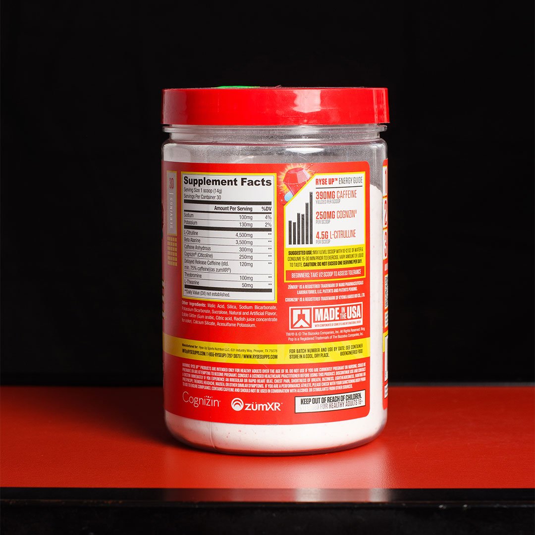 Loaded Pre-Workout de RYSE Up Supplements, sabor Ring Pop Cherry, ofrece una fórmula potente, transparente y respaldada científicamente, diseñada para proporcionar bombas musculares explosivas, enfoque mental preciso y energía prolongada sin “crash” posterior. Cada porción es ligera (~14–15 g) y ofrece resultados de alto rendimiento.