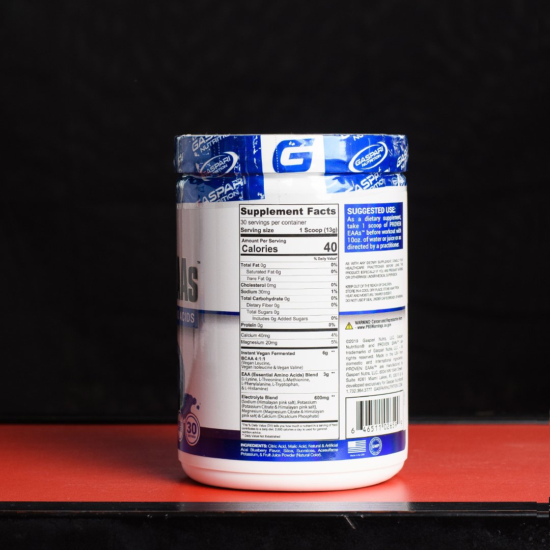 Proven EAAs de Gaspari Nutrition es un suplemento de aminoácidos esenciales (EAAs) formulado para apoyar la síntesis proteica, la recuperación muscular, la resistencia y la hidratación.
