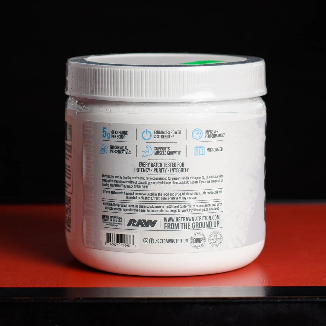 La Creatine Monohydrate de Raw Nutrition es un suplemento en polvo a base de creatina monohidratada pura, en presentación de 150 g (equivalente a 30 porciones). Diseñada para mejorar la fuerza, resistencia, recuperación y el crecimiento muscular, es una opción sin sabor que se mezcla fácilmente con agua o batidos.