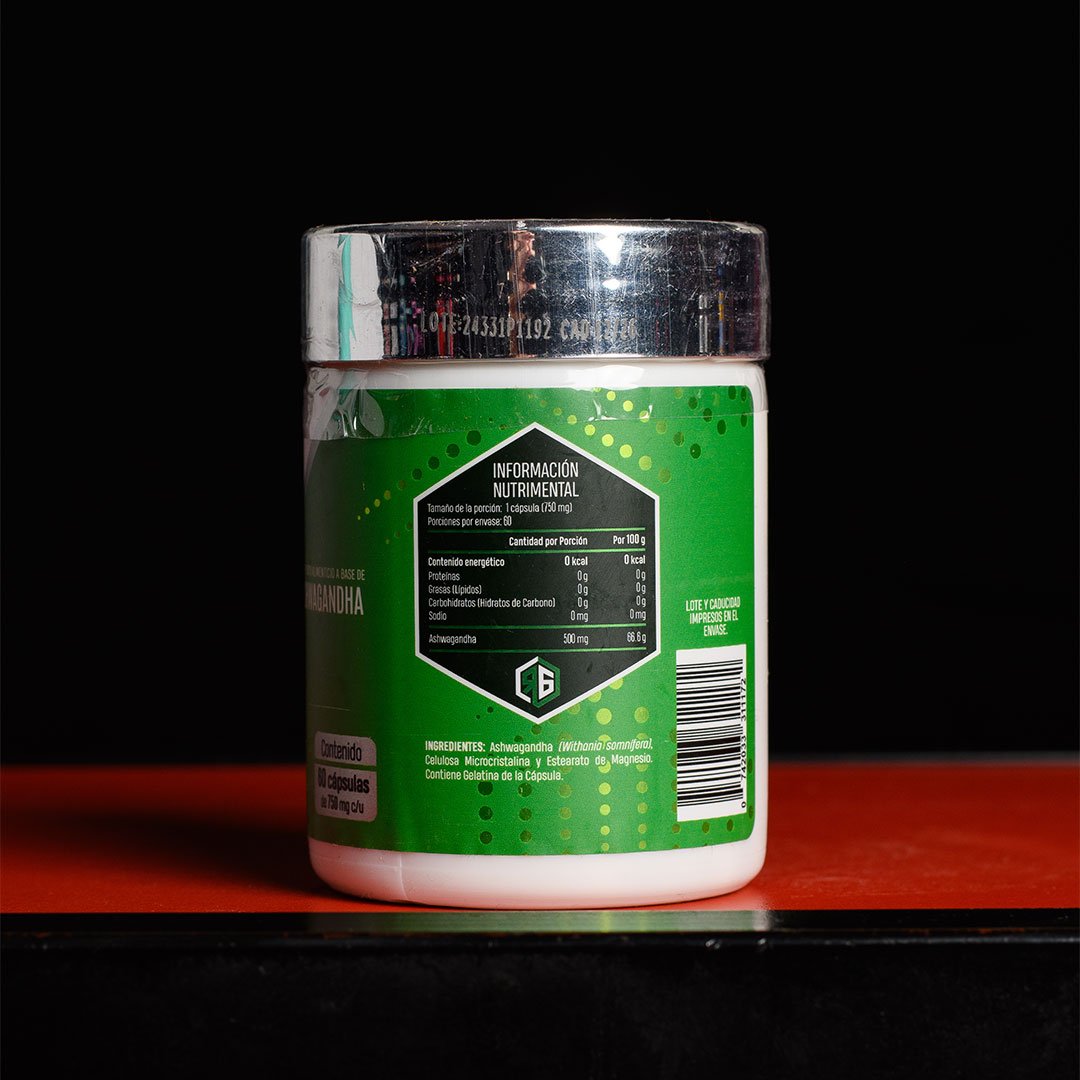Cada cápsula contiene 750 mg de extracto de raíz de ashwagandha (Withania somnifera), estandarizado para garantizar su potencia y eficacia.