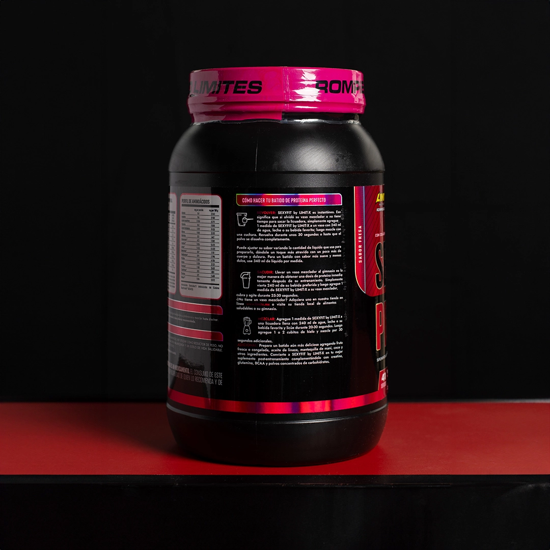 Sexy Fit de LimitX es una proteína diseñada especialmente para complementar la nutrición diaria y apoyar un estilo de vida activo. Su fórmula combina proteína, colágeno hidrolizado y ácido fólico, ayudando a mantener la masa muscular, la salud de la piel, cabello y uñas, además de contribuir al bienestar general. El sabor Fresa ofrece un batido suave y agradable, ideal para consumo diario.