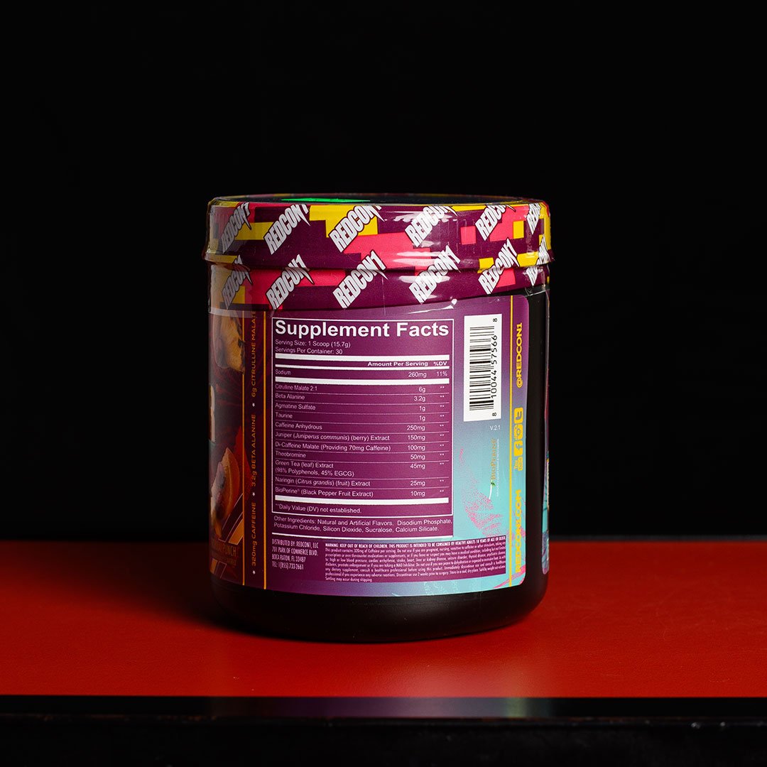 • L-Citrulina Malato: 6 g — mejora el flujo sanguíneo y genera bombas musculares.