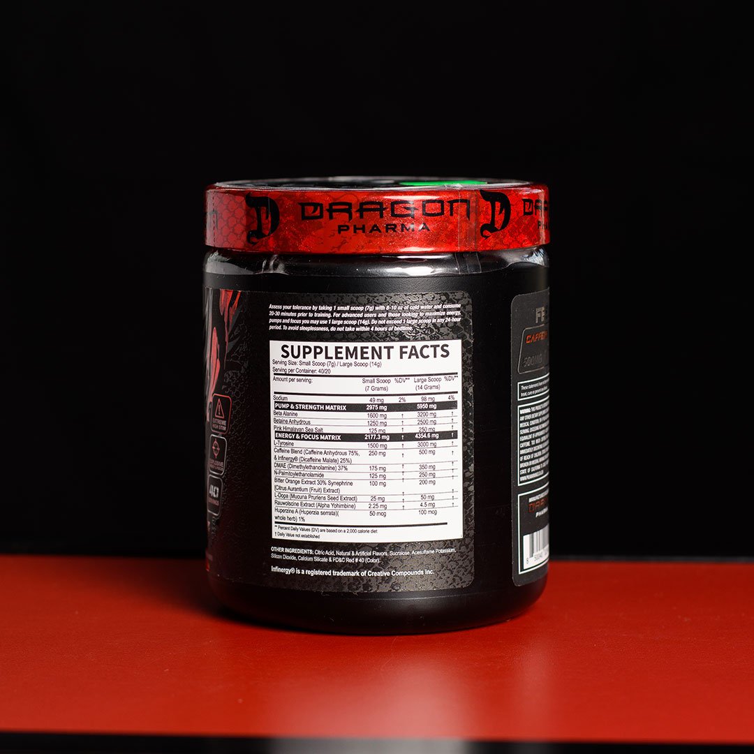 Perfil del producto: Se trata del pre-entreno más potente de Dragon Pharma, con una fórmula altamente estimulante, diseñada para brindar energía extrema, enfoque mental preciso, resistencia elevada, bombas musculares y efectos termogénicos intensos.